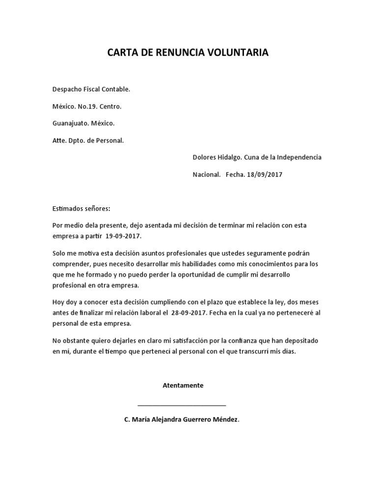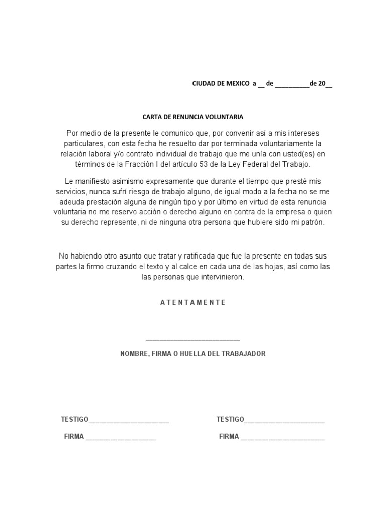 Carta De Renuncia Voluntaria Pdf Mexico Gobierno