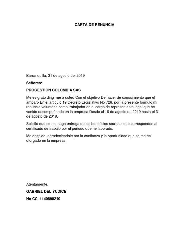 Carta De Renuncia Pdf Instituciones Sociales Ciencias Sociales